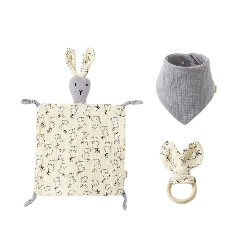 Комплект из 3 предметов хлопковый детский спящий кукла набор трех платок с кроликом 6-слойный треугольный шарф деревянное кольцо кролик 424,76 ₽ - 517,19 ₽