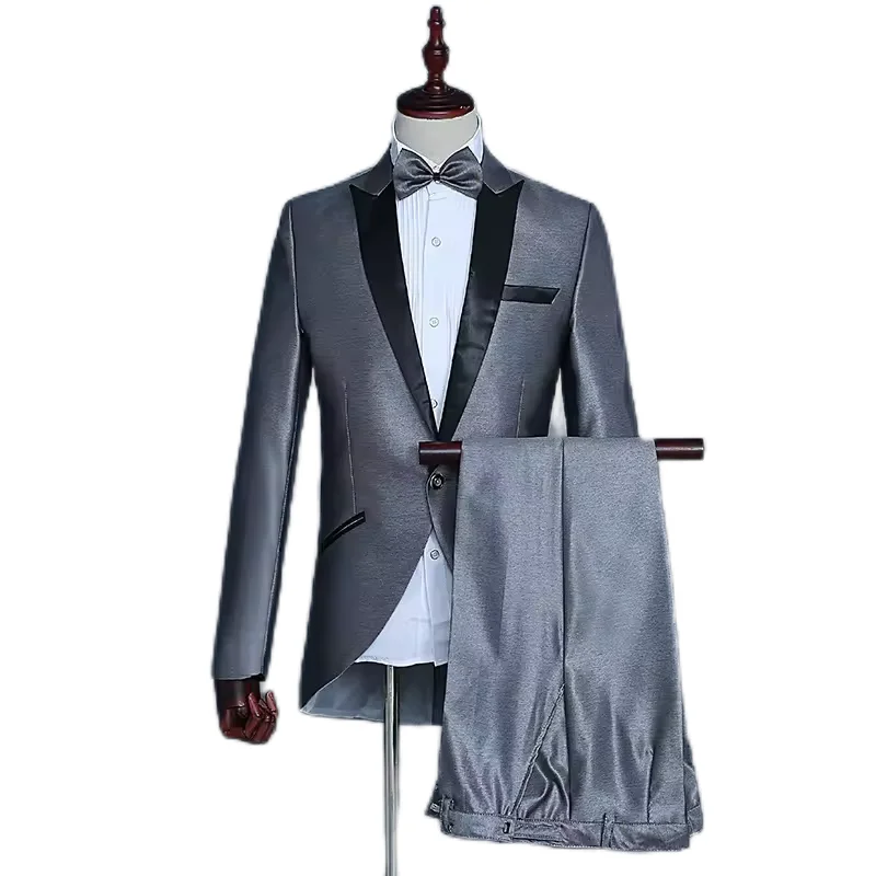 Лидер продаж, новый высококачественный шерстяной мужской облегающий костюм из двух предметов, новый костюм для свадебного платья