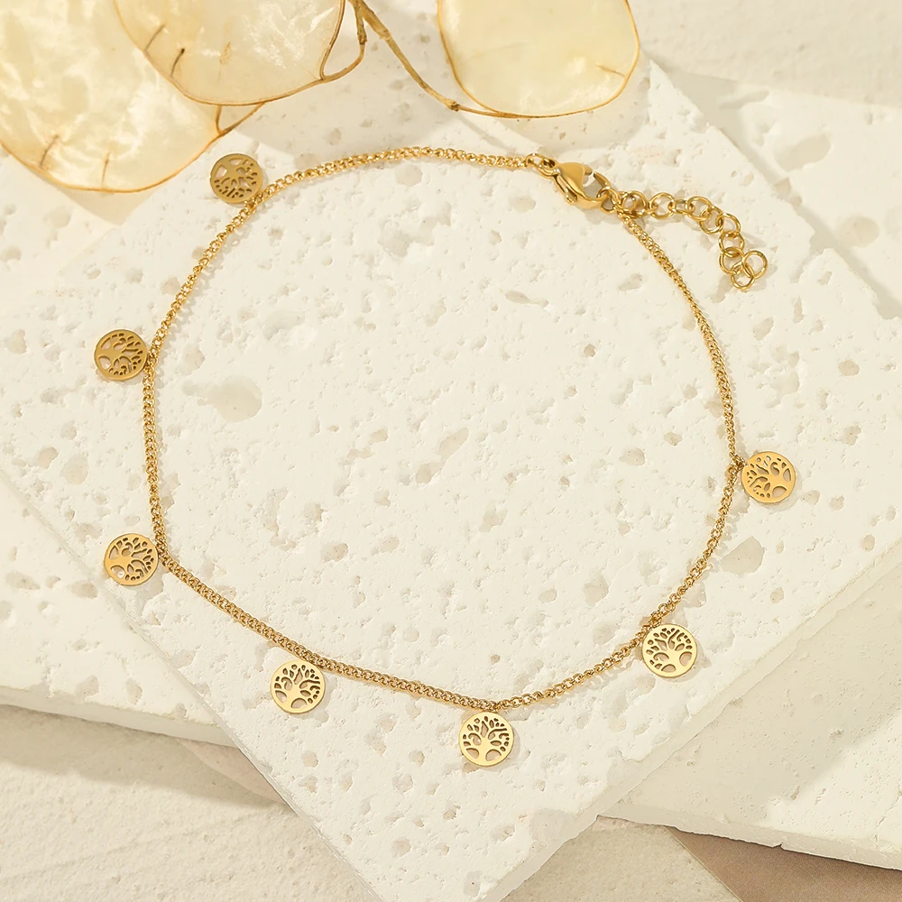 Новый стиль летние ювелирные изделия из нержавеющей стали круглый ножной браслет 18K позолоченное Дерево жизни дизайн цепи для ног 188,79-257,44 ₽