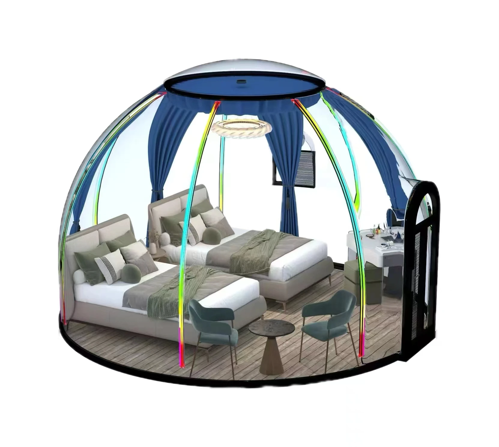 Черный 2 человека Зимний Кемпинг Сад иглу сборная геодезический металлический пузырь отель купол палатка изолированный чехол дом для продажи