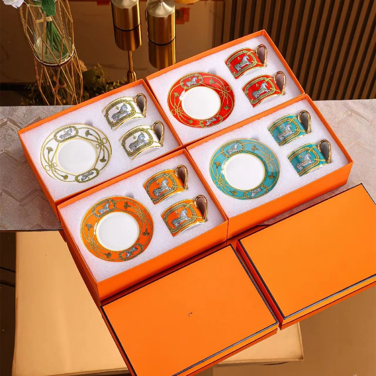 Хит продаж роскошные керамические 2 набора чашек с гравировкой фарфоровые чайные чашки блюдца для гостиной Кофейные Наборы в Западном европейском стиле