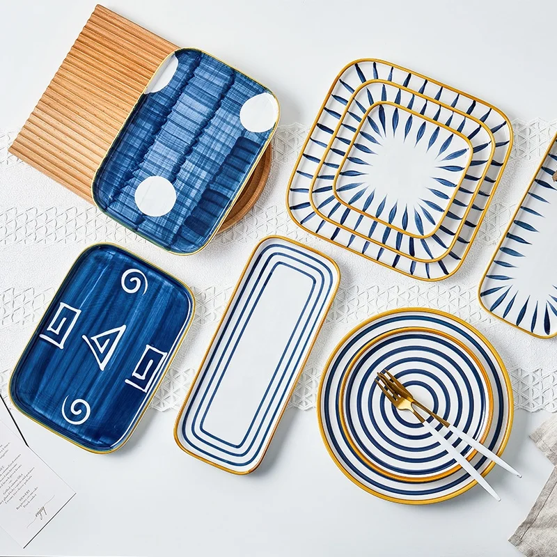 Недорогие квадратные керамические Столовые тарелки ручной росписи с цветами