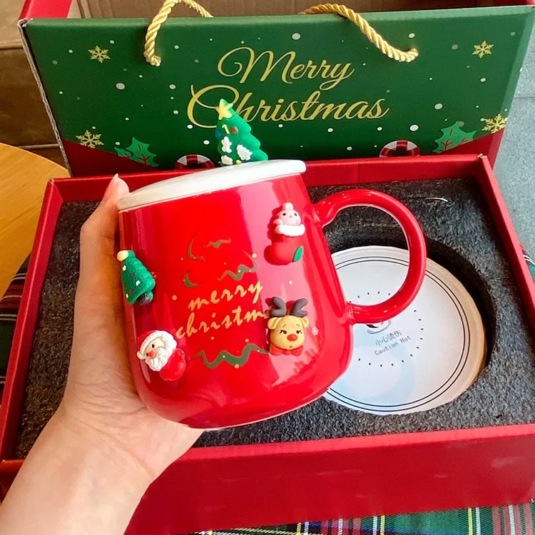 Оптовая продажа сублимационные 3d кружки на рождественскую елку подарочные наборы в коробке для детей красная зеленая электрическая кружка грелка кофейная чашка керамическая