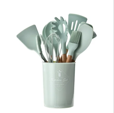 11 шт. Bpa бесплатные силиконовые приготовления пищи кухонная утварь набор деревянные ручки инструменты для Силиконовые Тернер щипцы шпатель 1 063,47-1 087,64 ₽