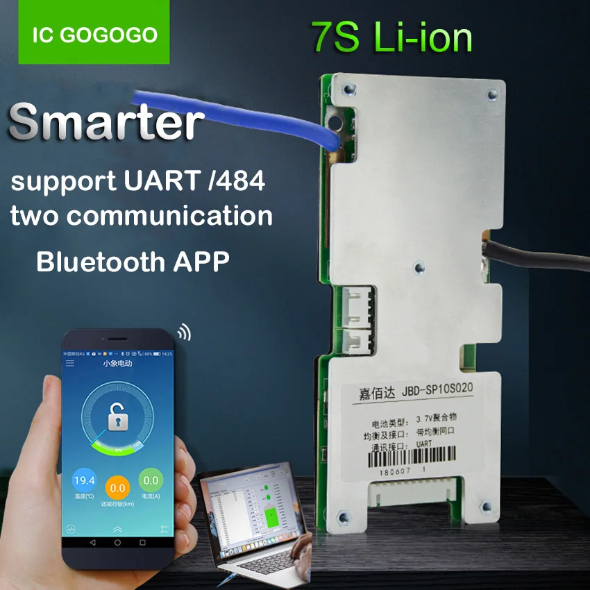 Интеллектуальная плата защиты литиевого аккумулятора 7S UART 485 двойная связь управление через Bluetooth приложение для управления дисплеем литий-ионный аккумулятор BMS 24 В eBike