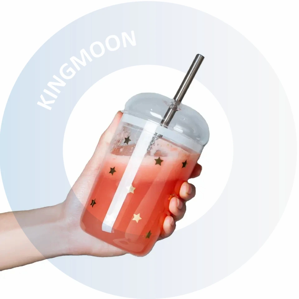 Стеклянная чашка для чая с молоком индивидуального размера многоразовая и экологически чистая с крышкой для фруктового чая из соломы и сока для кофе и напитков