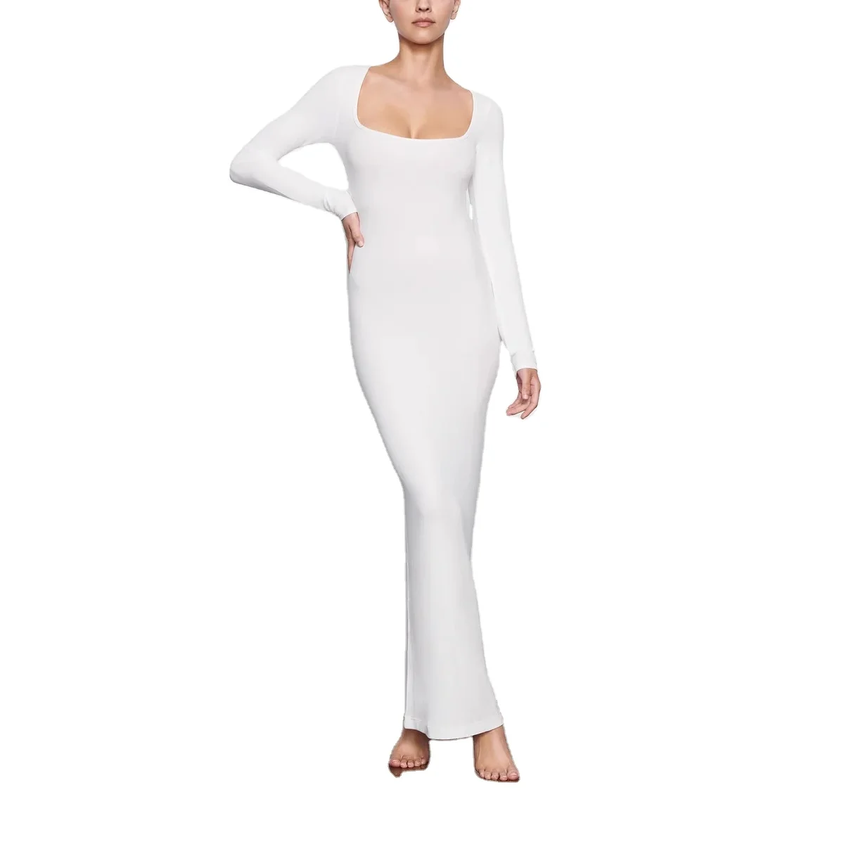 Высококачественное трикотажное облегающее платье с квадратным вырезом и длинным рукавом для женщин 691,23 ₽ - 717,64 ₽