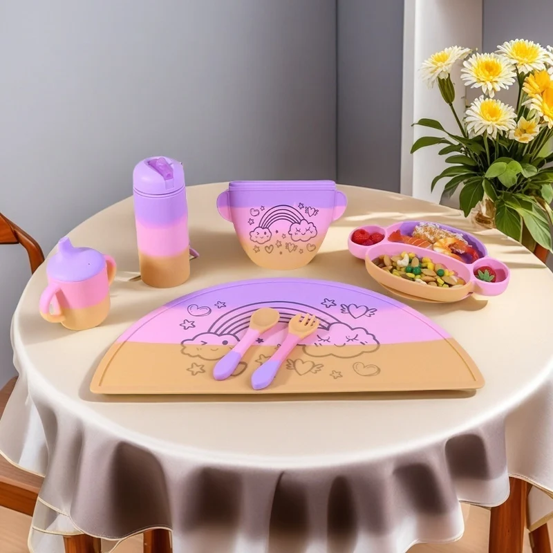 Горячая распродажа новая 2024 силиконовая детская посуда набор тарелок с защитой от падения цепи пищевая присоска на заказ