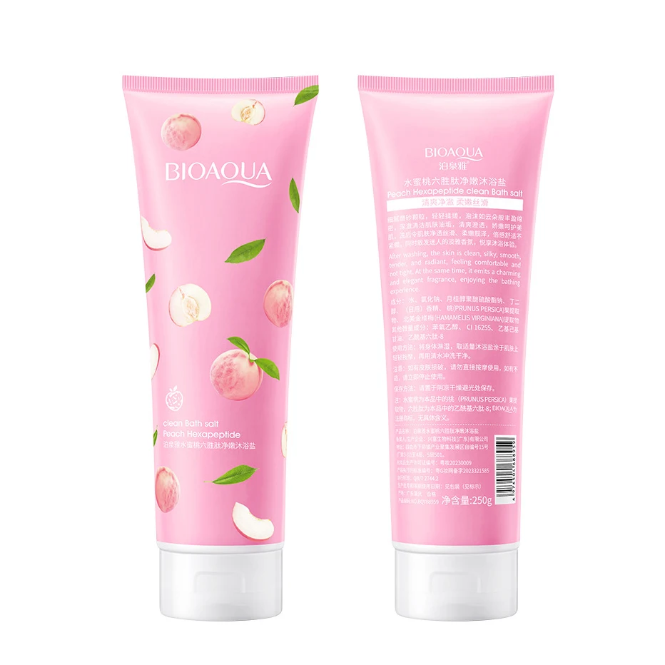 Биоаква частная торговая марка соль для ванны тела персиковый органический скраб улучшающий Отшелушивание куриной кожи отбеливающая