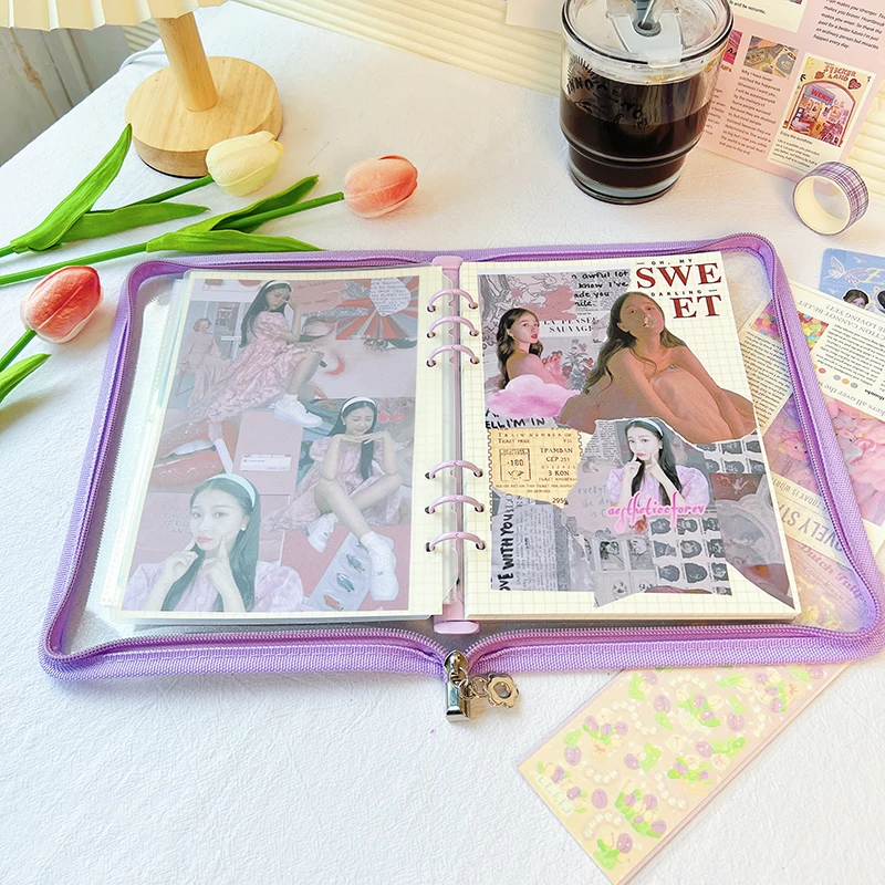 Планировщик с 6 отверстиями для фотоальбома A5 A6 Прозрачный блестящий ПВХ оптовая продажа кольцо многоцветной молнией