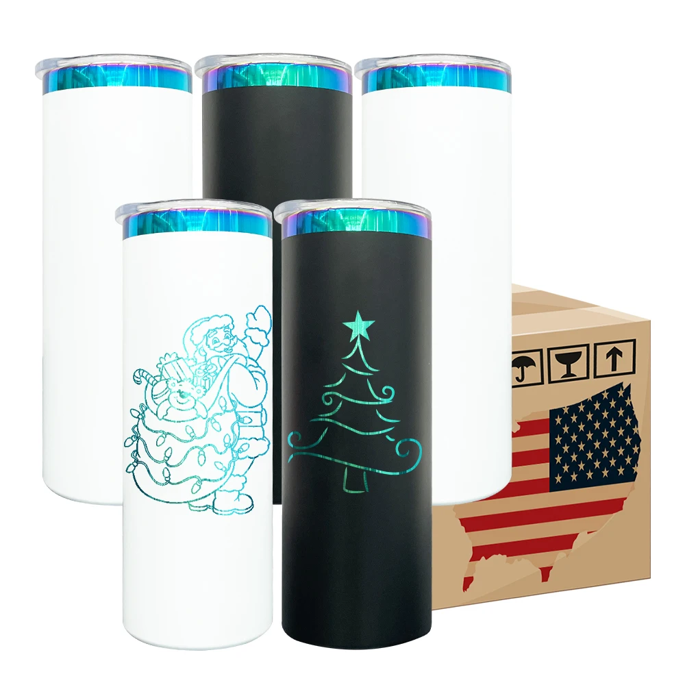 Склад США, дорожная кружка, черный, белый, с порошковым покрытием, с зеленым покрытием, 20 унций, тонкий прямой стакан с крышкой и соломой