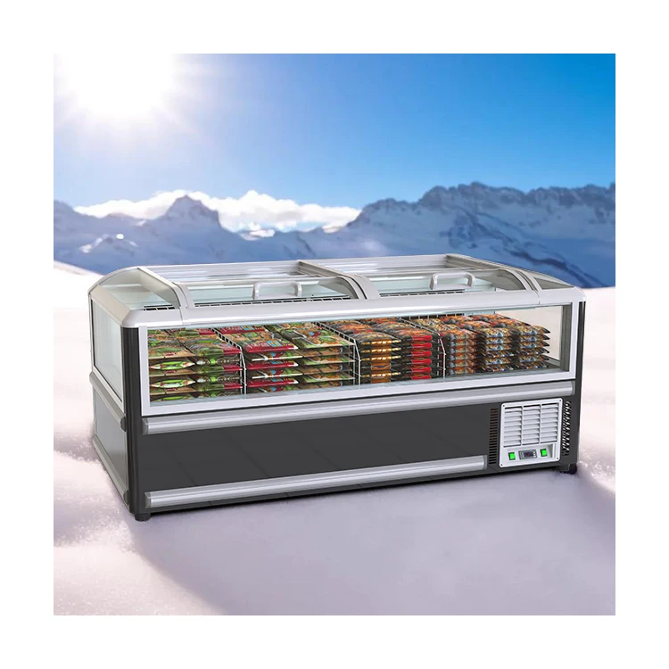 Свежее мясо Холодильный морозильник шкаф супермаркет изогнутая стеклянная дверь горизонтальная морозильная камера 93 843,06 ₽ - 98 811,23 ₽