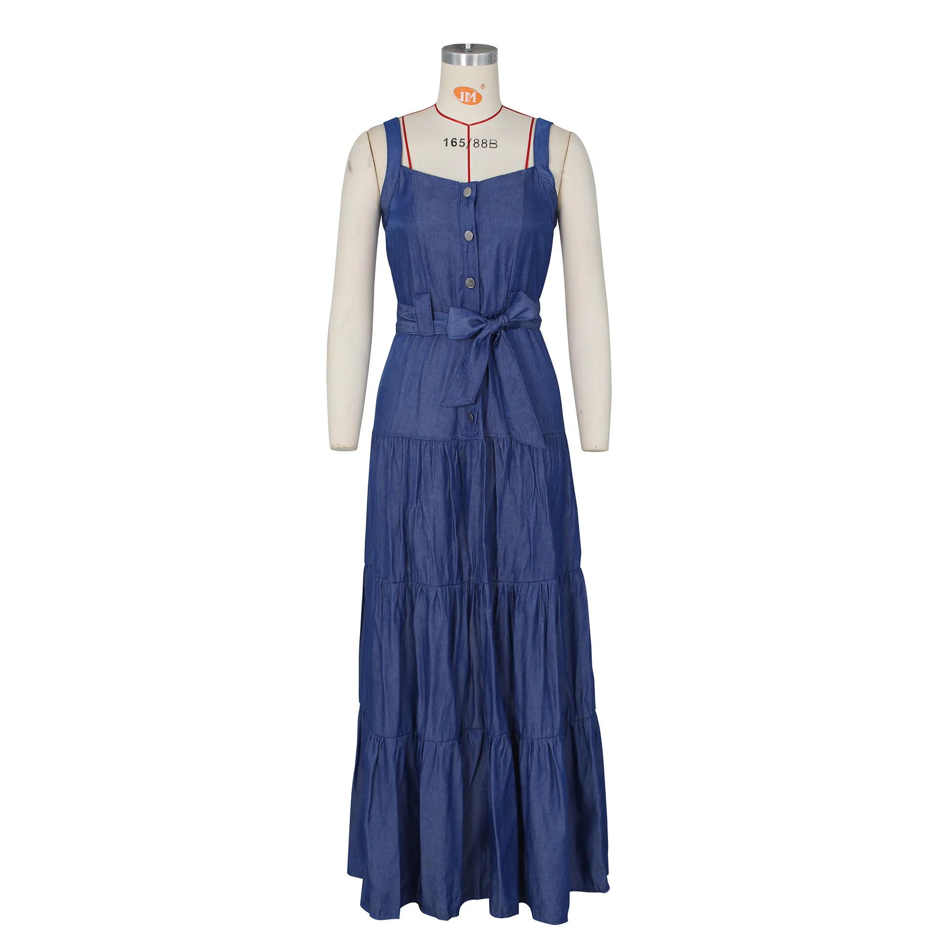 Женское летнее джинсовое платье с лямкой на шее, длинное Пляжное Платье макси с лямкой на шее