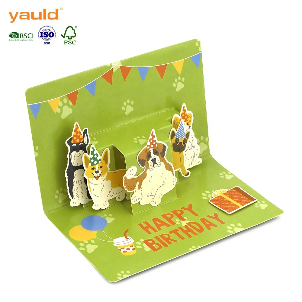Сделанная на заказ бумажная печатная Веселая собака день рождения с 3D выдвижными поздравительными открытками оболочкой 25,40 ₽ - 101,58 ₽