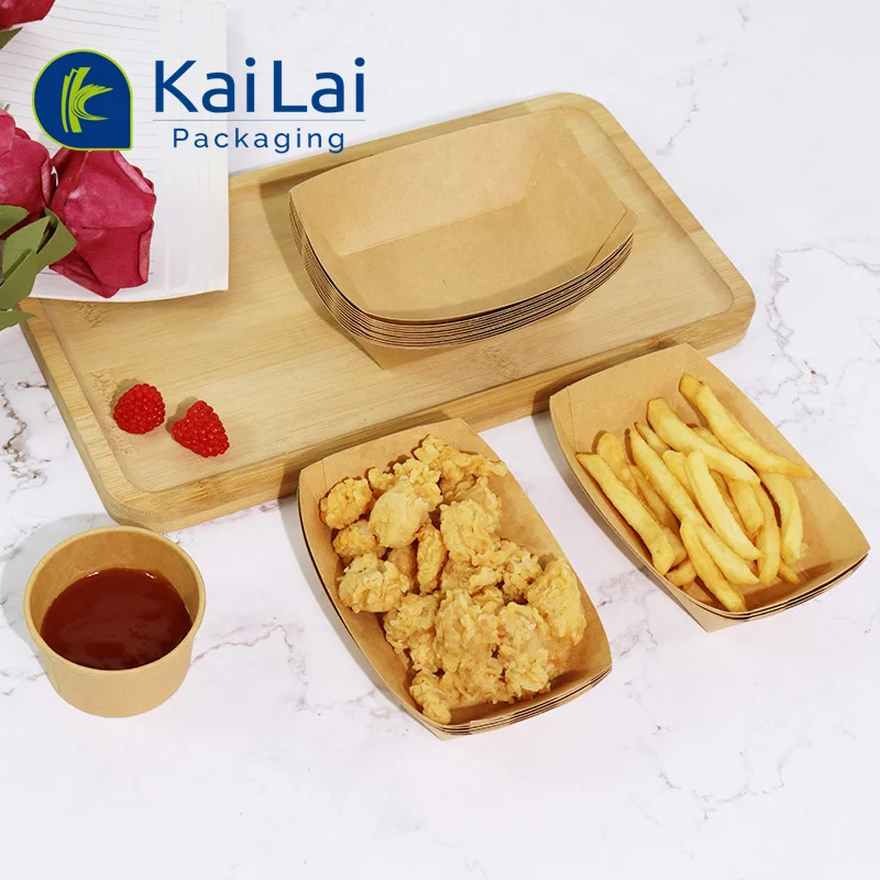 Настраиваемый одноразовый лоток в форме бумажных лодок из крафт-бумаги для закусок контейнер перерабатываемой бумаги с покрытием ПЭ картофеля фри