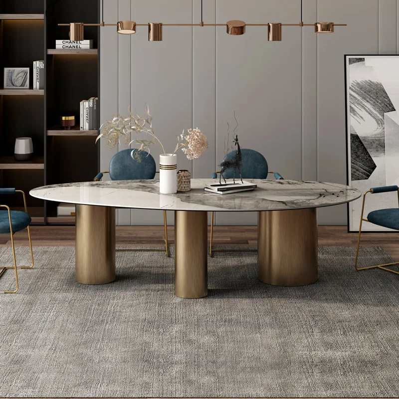 Современный популярный обеденный стол из камня в новом стиле на заказ Роскошный домашний и стул нержавеющей стали с мраморной поверхностью