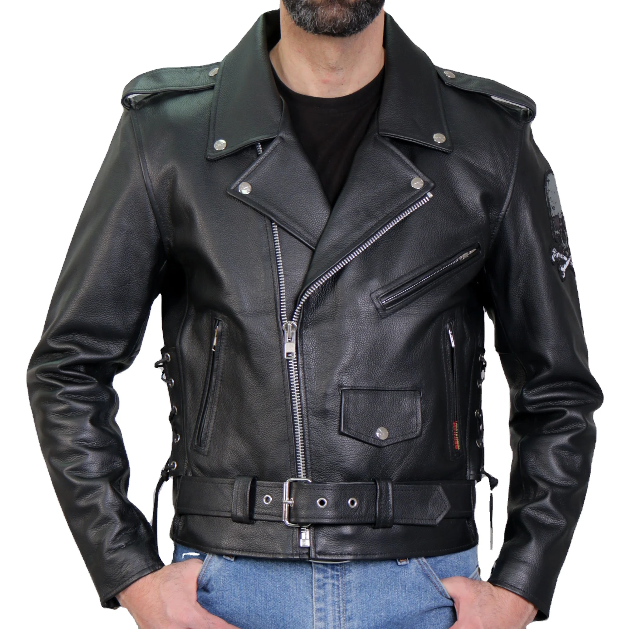 Мужские Мотоциклетные Куртки из натуральной кожи жакеты с черепами и перекрестными косточками лацканами косой молнией 7 407,83 ₽ - 10 777,57 ₽