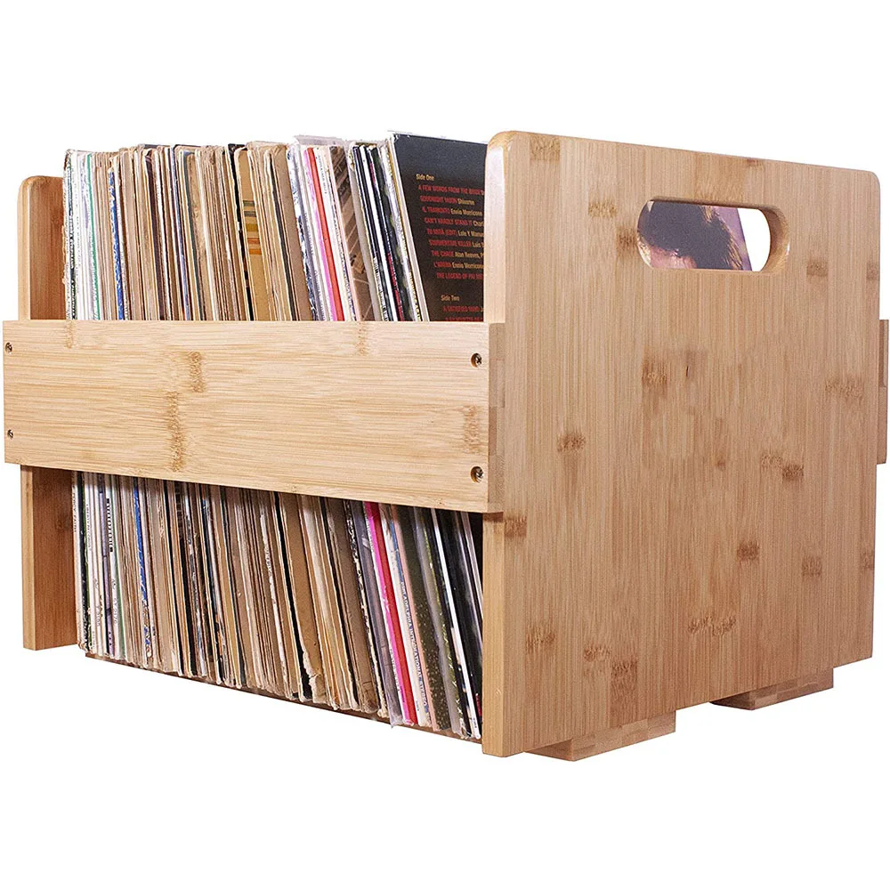 Бамбуковый виниловый ящик для хранения пластинок деревянный рекордсмен до 80 альбомов