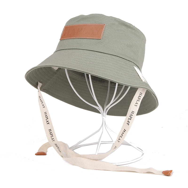 Пользовательский унисекс кожаный патч высокого качества хлопок винтажный однотонный рыбак ведро шляпа со шнурком 236,40 ₽ - 737,37 ₽