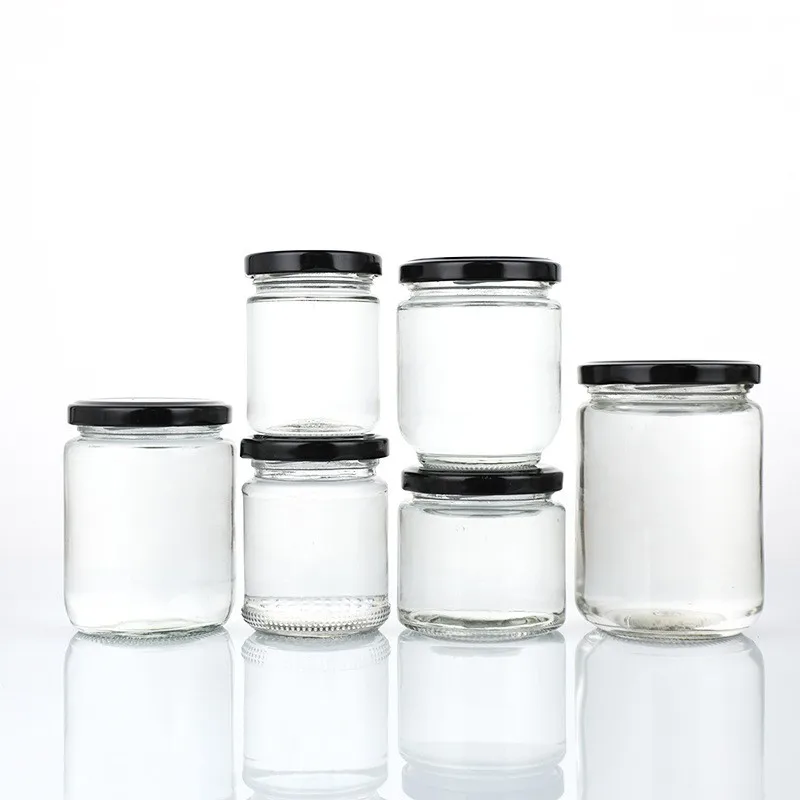 350 мл 500 1000 1 л большой объем стеклянной круглой формы для хранения пищевых продуктов прозрачное стекло меда/рассола банка с этикеткой