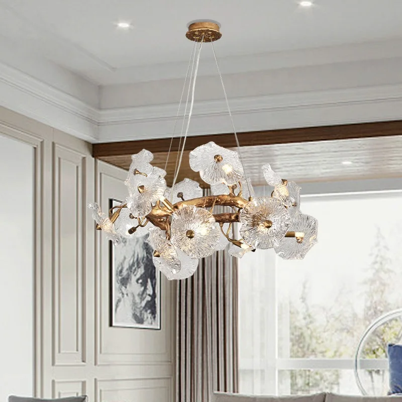 Современная Роскошная светодиодная Люстра для гостиной декоративная столовая стеклянный лист лотоса Подвесная