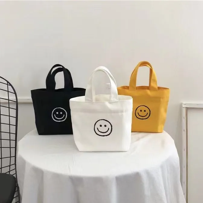 Хит продаж Женская Студенческая сумка для обеда Милая Мини-сумочка со смайликом холщовая маленькая 33,13 ₽ - 87,22 ₽