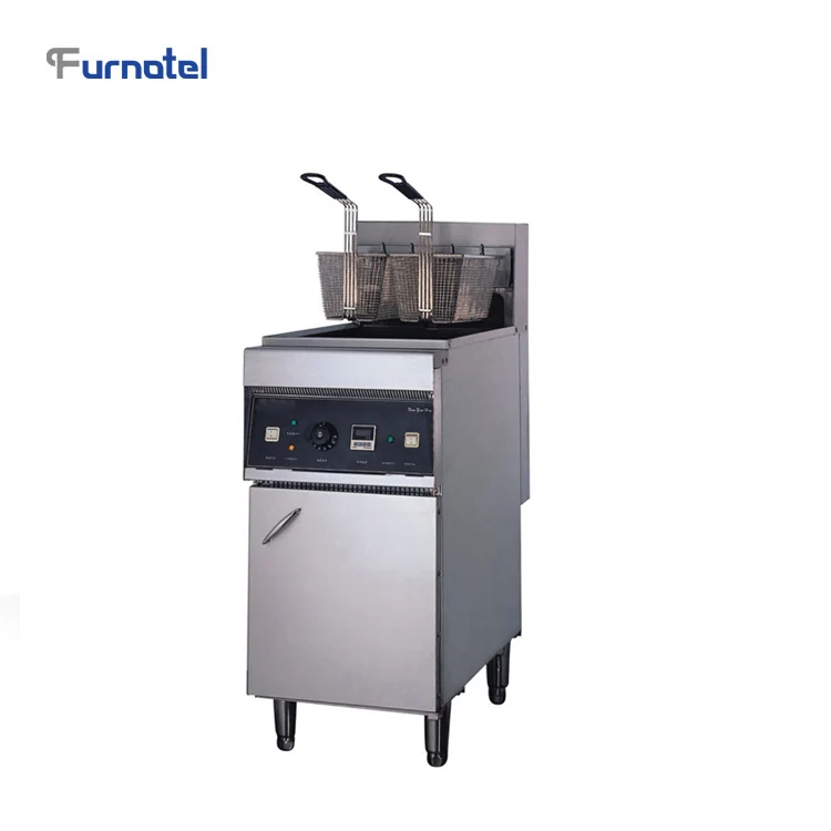 Газовый бак большой емкости автоматический температурный круглый Угловой дизайн коммерческая фритюрница для глубокого шкафа с тормозными роликами