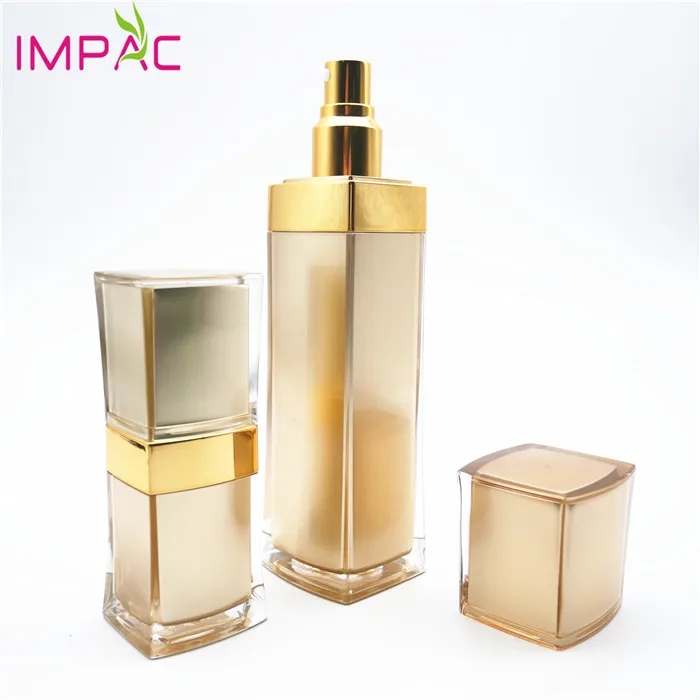 Золотой квадратный пластиковый лосьон для кожи, необычная пластиковая бутылка с двойными стенками, 60 мл