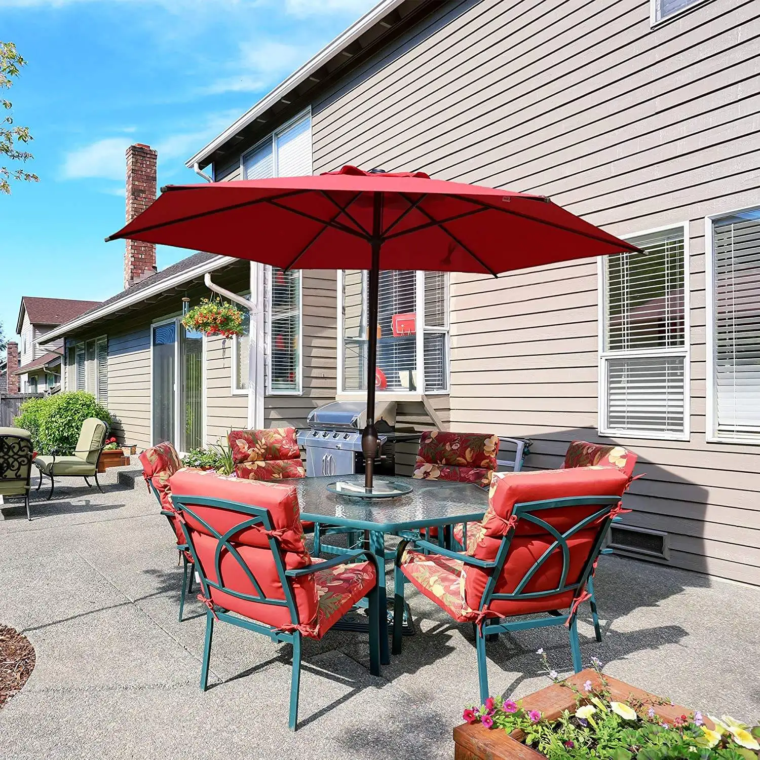 Высококачественный стальной открытый зонтик патио сад ресторан коричневый красный полосатый