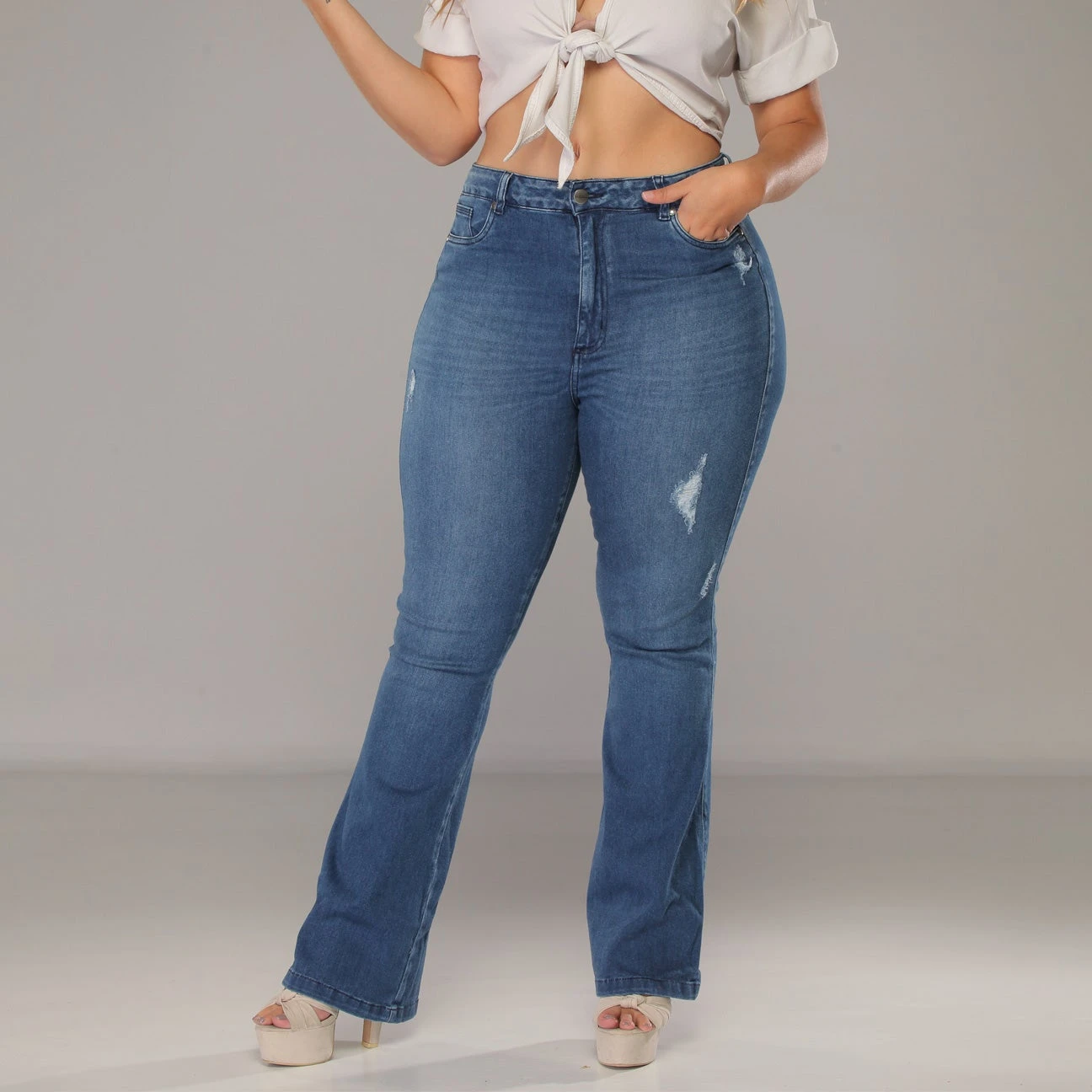 Высококачественные женские джинсы большого размера облегающие эластичные расклешенные джинсовые брюки для бега полных женщин 1 214,44 ₽ - 1 341,41 ₽
