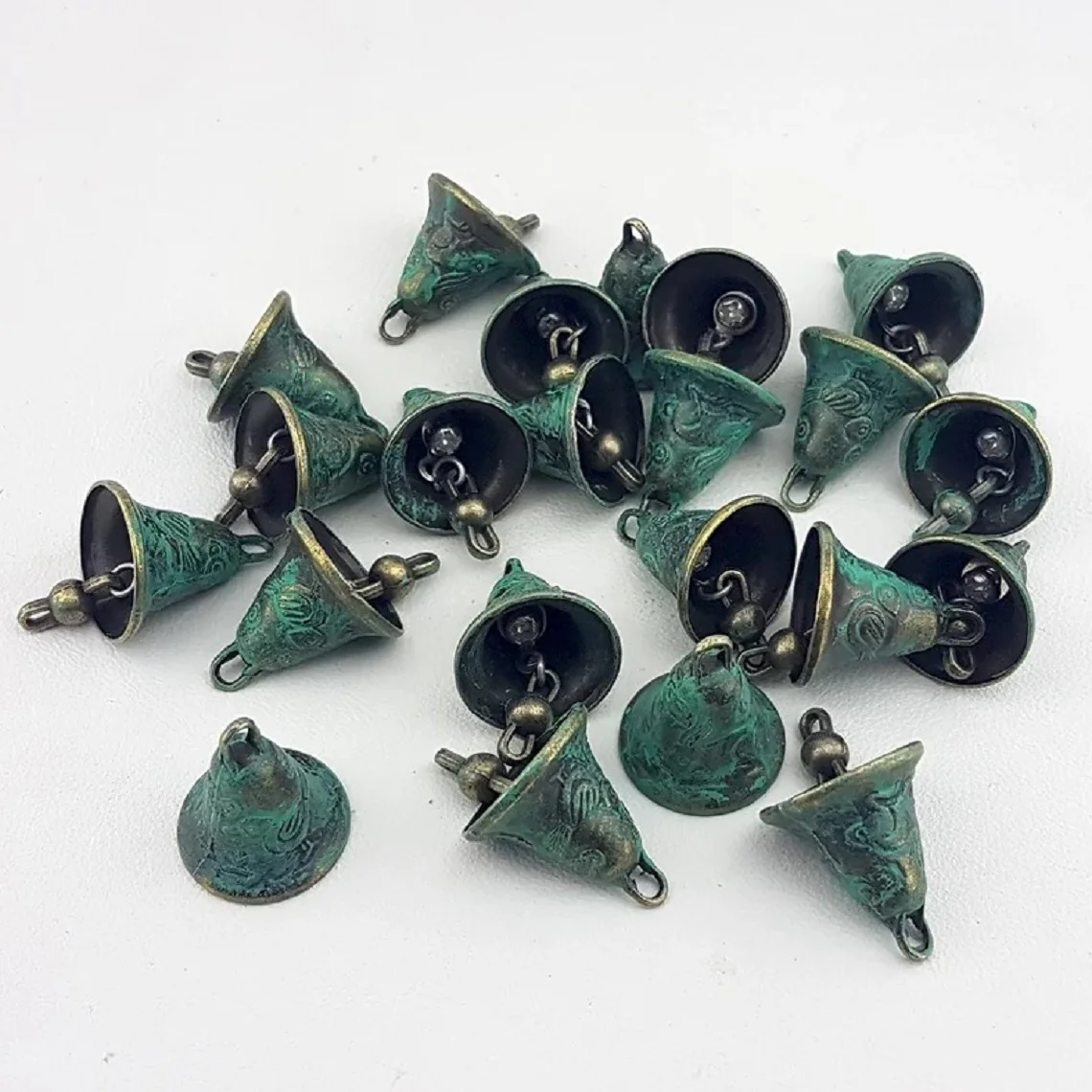 Оптовая продажа с фабрики небольшие подвесные колокольчики в деревенском стиле зеленые готовые используются для рождественского декора
