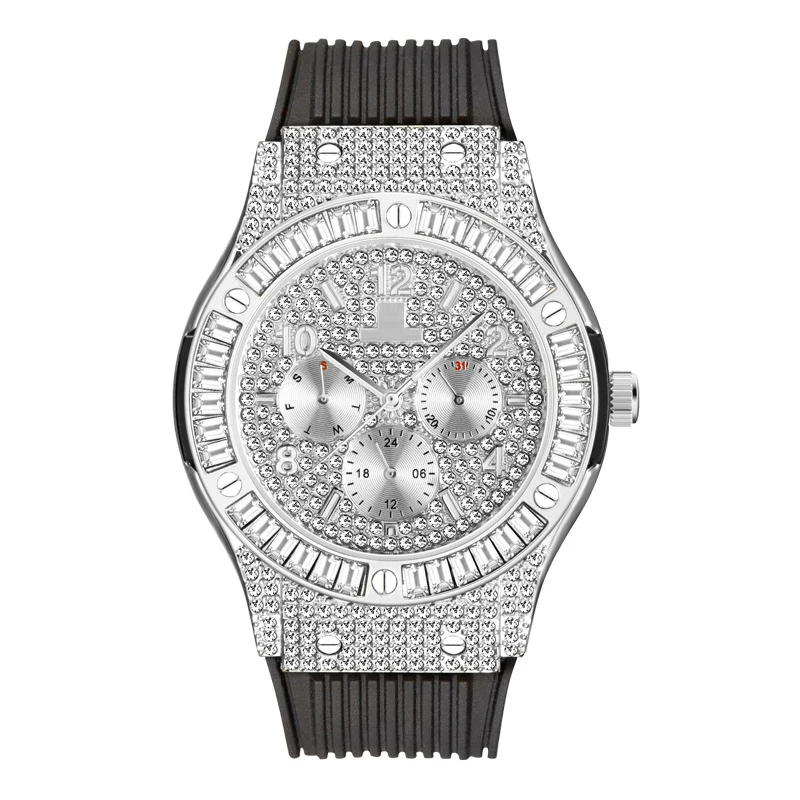 Blues RTS оптовая продажа в стиле хип-хоп для мужчин и женщин, роскошные японского часового механизма цепи из нержавеющей стали с бриллиантами наручные часы с силиконовым ремешком