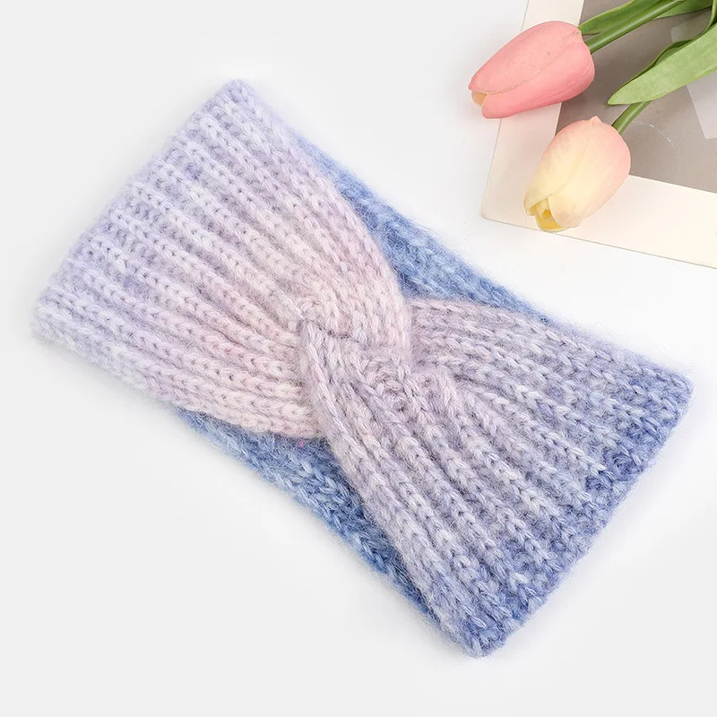 Градиентные вязаные повязки на голову спортивные наушники полосатые теплые шерстяные аксессуары для волос красочные из полиэстера