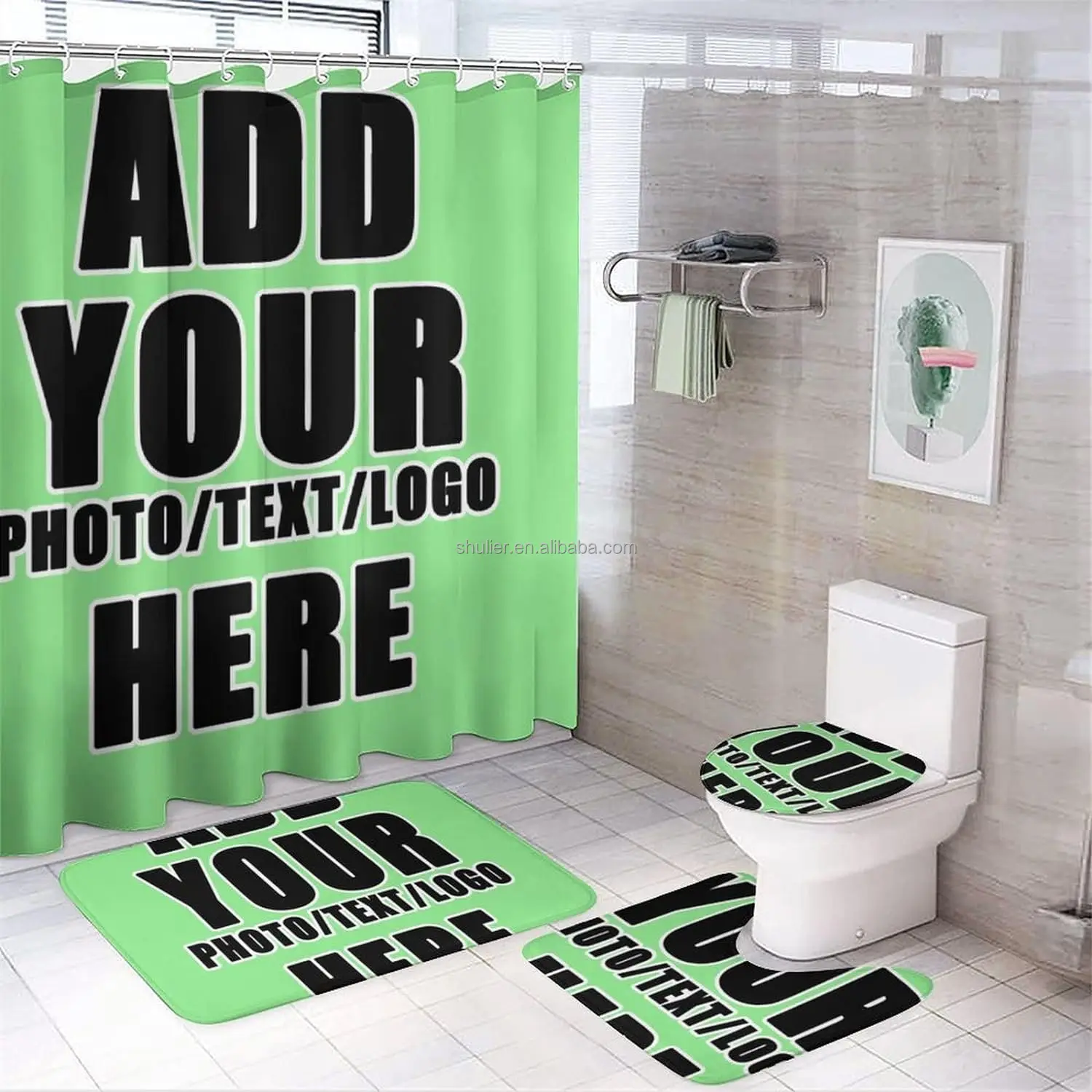 Набор ковриков для ванной с принтом на заказ водонепроницаемая занавеска душа крючками коврика в отеле