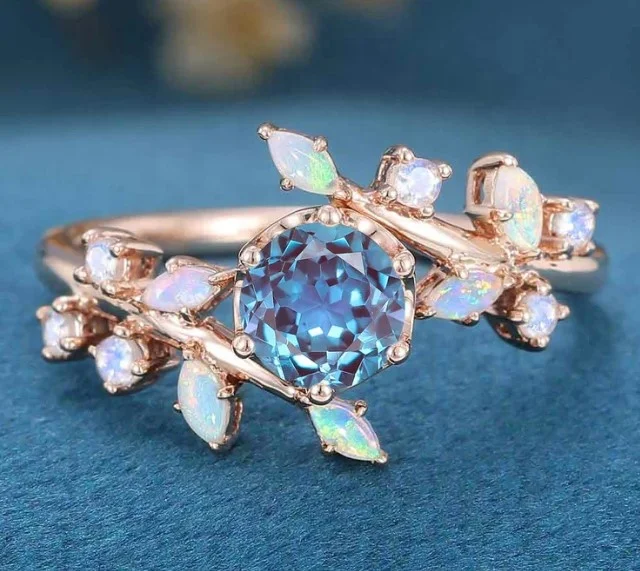 Круглое лабораторное ювелирное изделие из александрита распродажа кольцо 925 стерлингового серебра с опалом 2 046,75 ₽ - 2 266,83 ₽