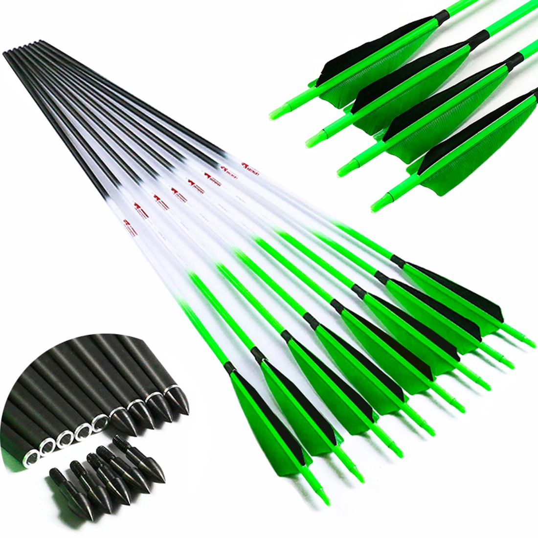 Linkboy стрельба из лука лучшие Стрелы Вал чистого карбона 300 340 400 500 600 флуоресцентная зеленая углеродная стрела для блочного Лука