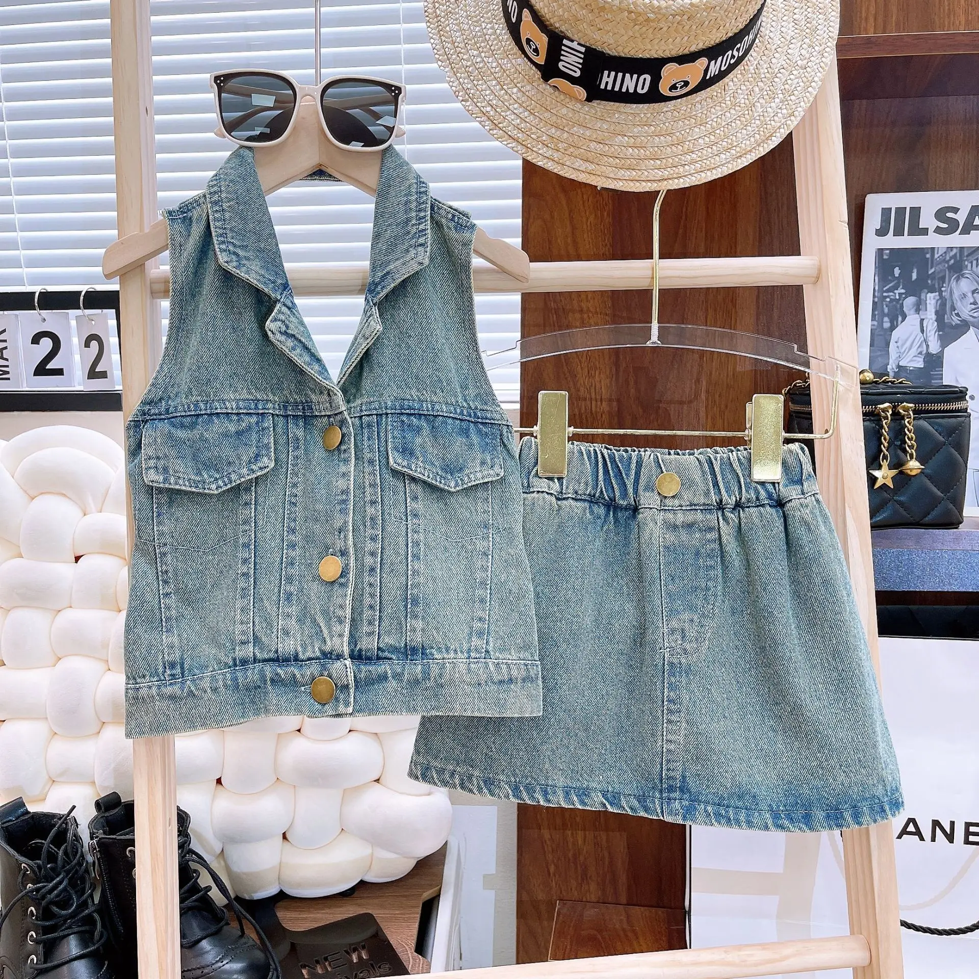 2024 летний комплект из 2 предметов для девочек джинсовая футболка и юбки модные комплекты одежды