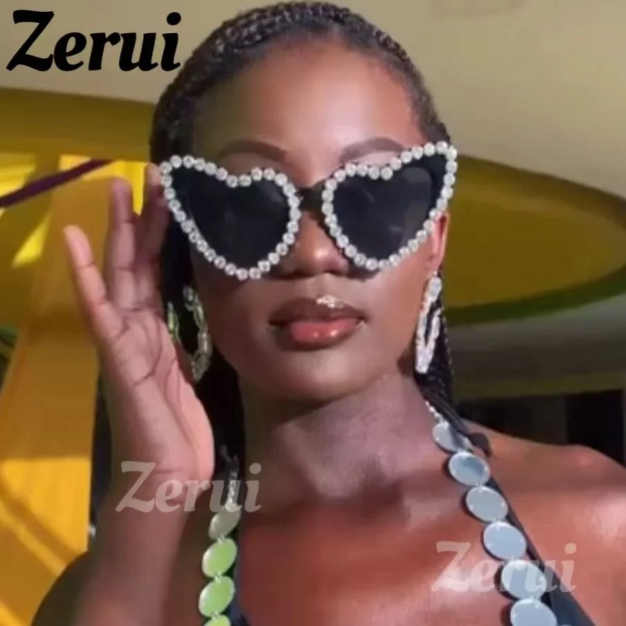 Очки солнцезащитные женские в стиле ретро винтажные Роскошные брендовые солнечные очки с розовыми сердечками и бриллиантами крутые хип-хоп 317,84-390,35 ₽
