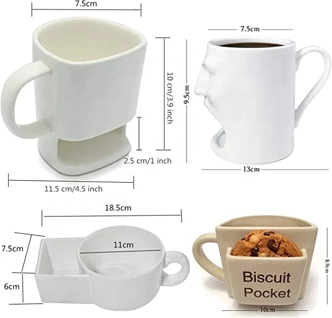 XHL фарфоровая молочная чашка для лица чайные кружки с карманом печенья белая керамическая кофейная кружка