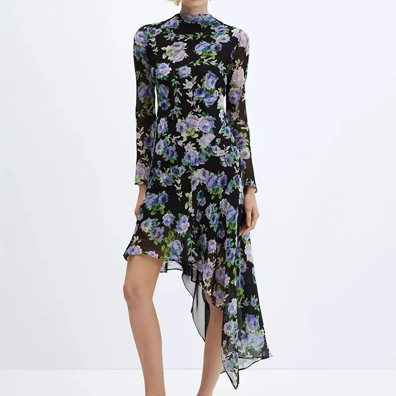Женское длинное платье с цветочным принтом 2024