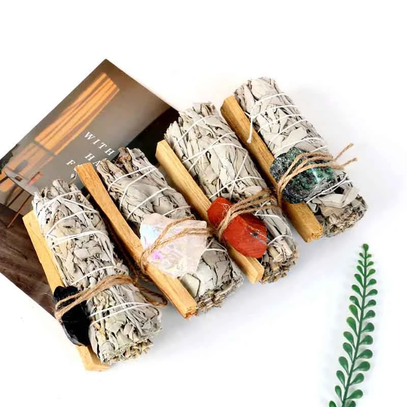 Шалфей из хрустального необработанного камня белый шалфей с палочкой Санто Перу святое дерево для медитации от производителя