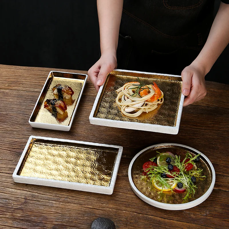 Японская керамическая тарелка для суши прямоугольная кухонная сервировочная тарелка плоская обеденная тарелка для домашней кухни безопасная микроволновая печь
