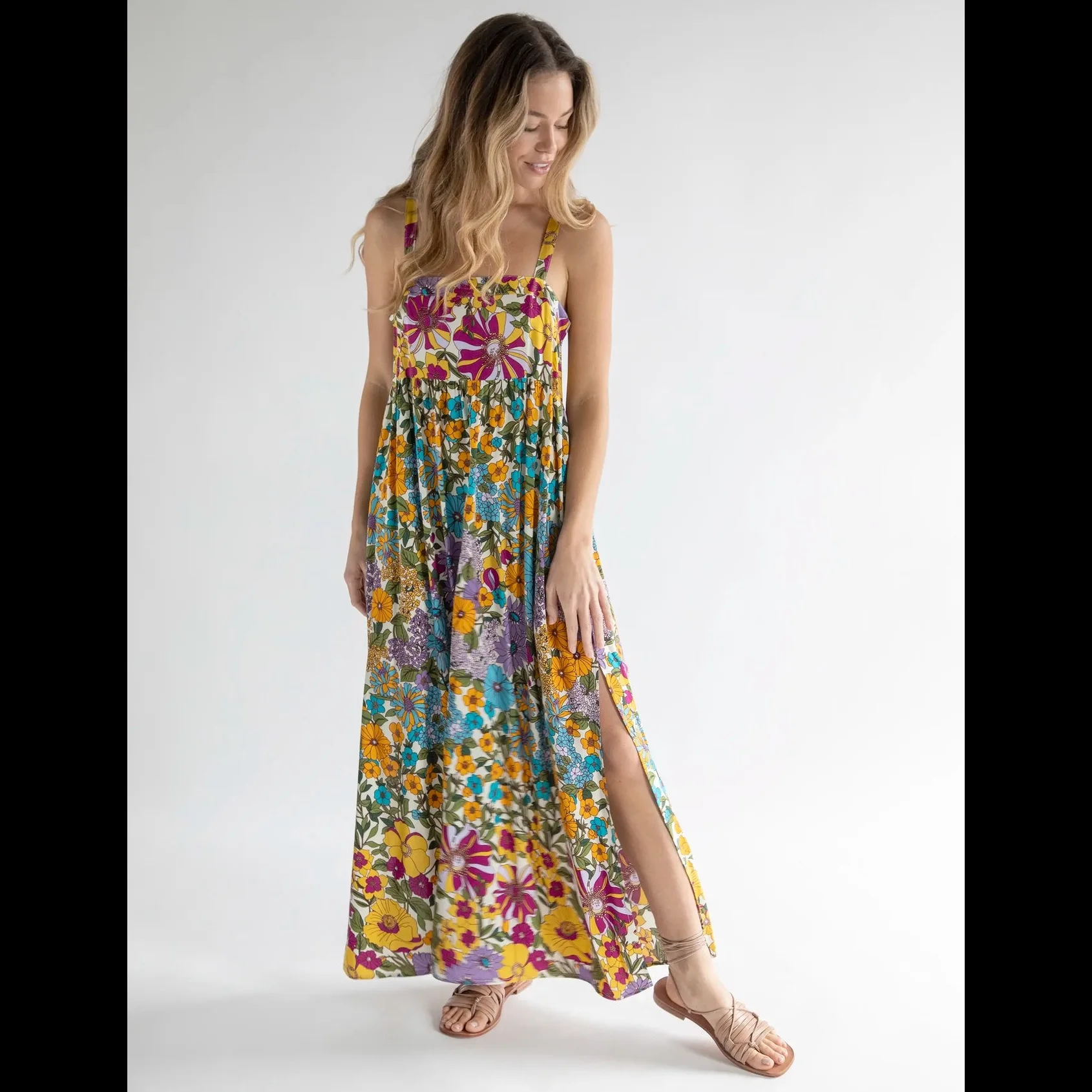 Оптовая продажа халат летнее платье с цветочным принтом из полиэстера буффами на рукавах и развевающейся юбкой повседневное элегантное женское длинное макси