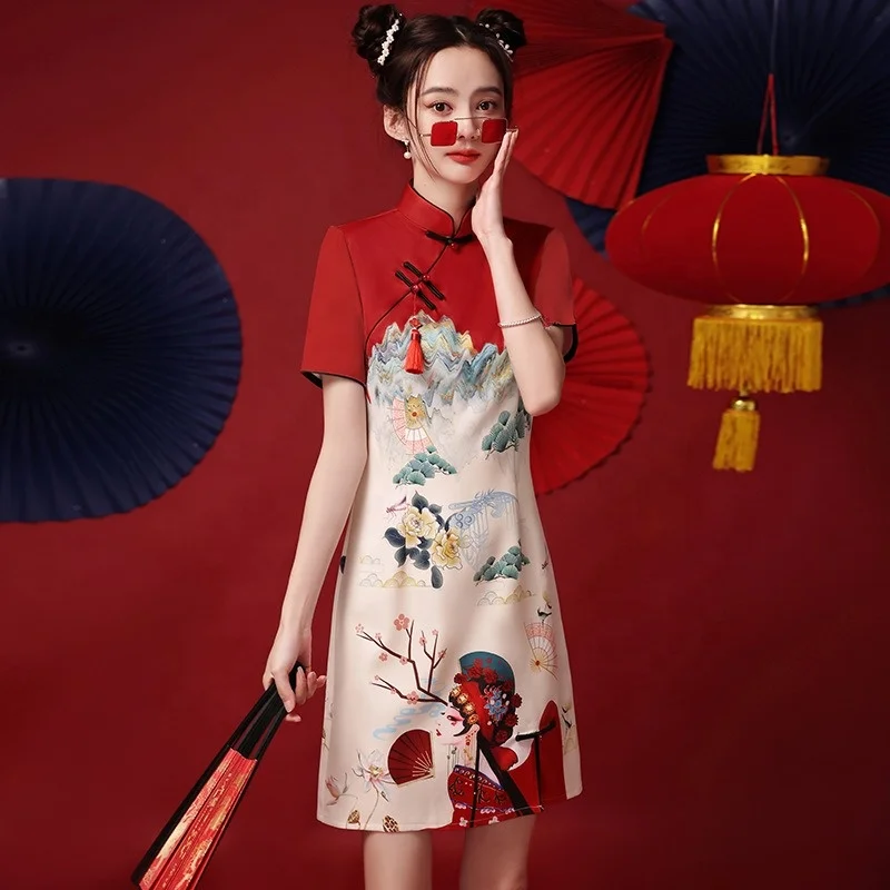 Модная китайская юбка Cheongsam новая популярная 2024 короткая улучшенное красное платье для подружки невесты вечернее Qipao 747,66 ₽ - 890,07 ₽