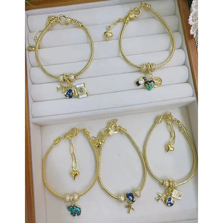 BC1547 европейские позолоченные браслеты на цепочке в виде змеи с CZ-прокладками и эмалью мир земной шар паспорт подвеска самолета 439,11 ₽ - 473,52 ₽