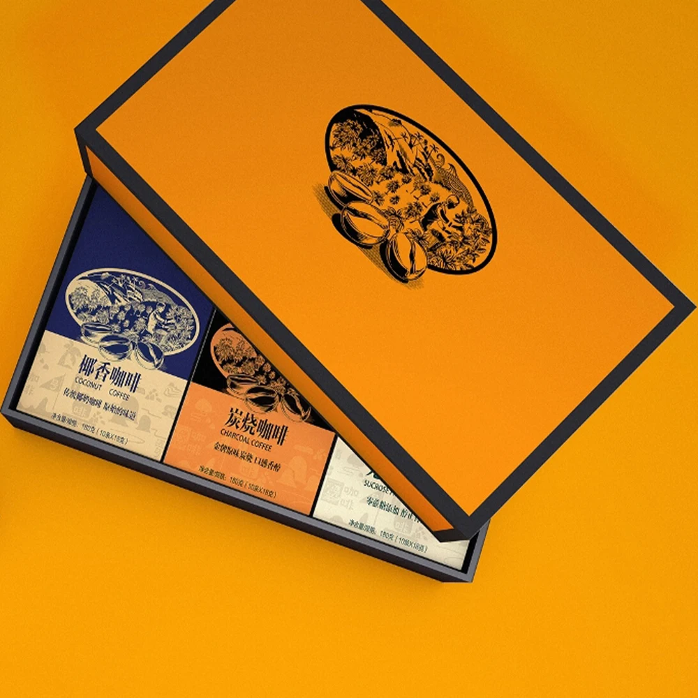 Настраиваемая ярко-оранжевая бумажная коробка для кофе идеально подходит подарка из цельных зерен капсул эспрессо и пробоотборников 1,11 ₽ - 3,31 ₽