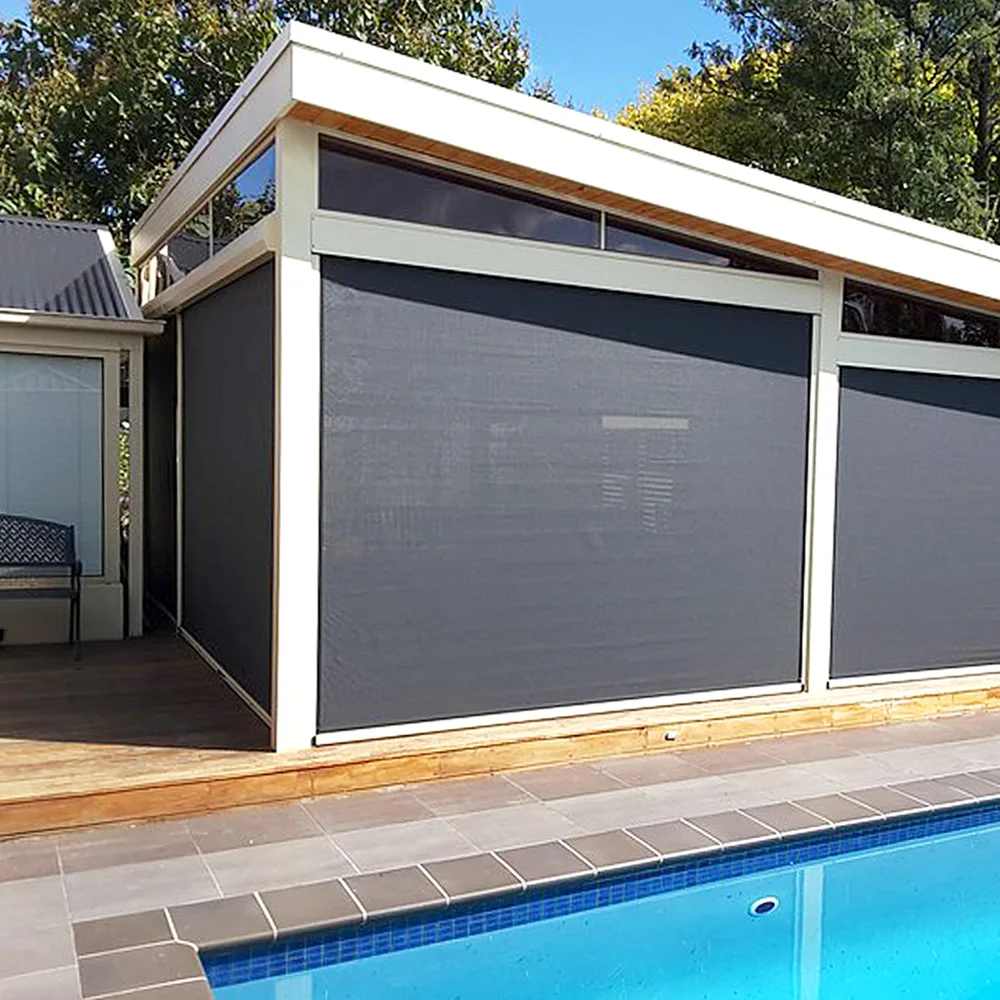 Двойные горизонтальные ветрозащитные роликовые жалюзи с электроприводом «Зебра»