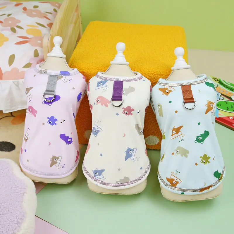 100% хлопковый белый собачий костюм футболка супер милый красочный принт медведя удобные летние рубашки для маленьких собак на весну и осень