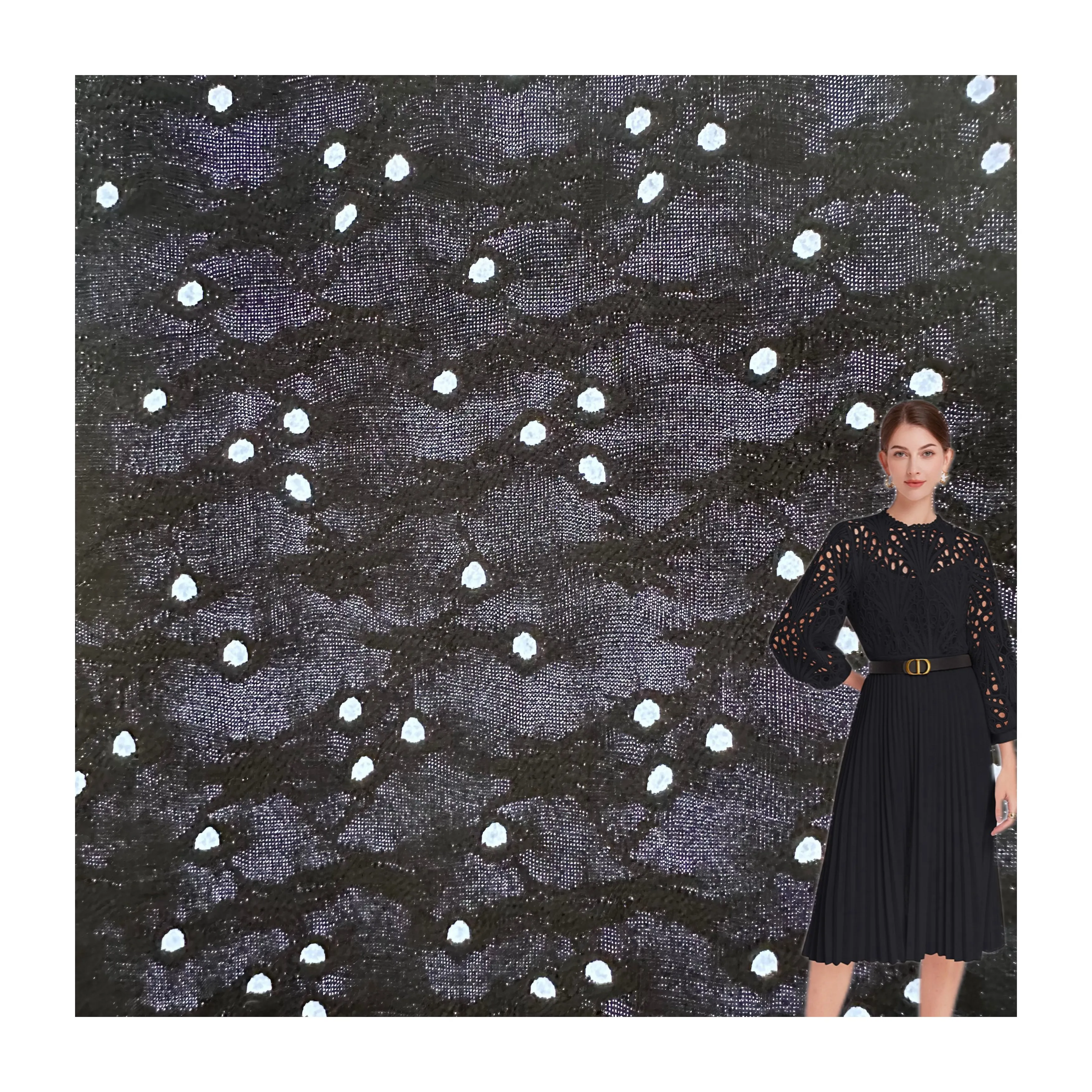 Цветная вязаная Водорастворимая кружевная ткань 190gsm черный полиэстер спандекс ажурная жаккардовая для одежды 386,42 ₽ - 428,37 ₽