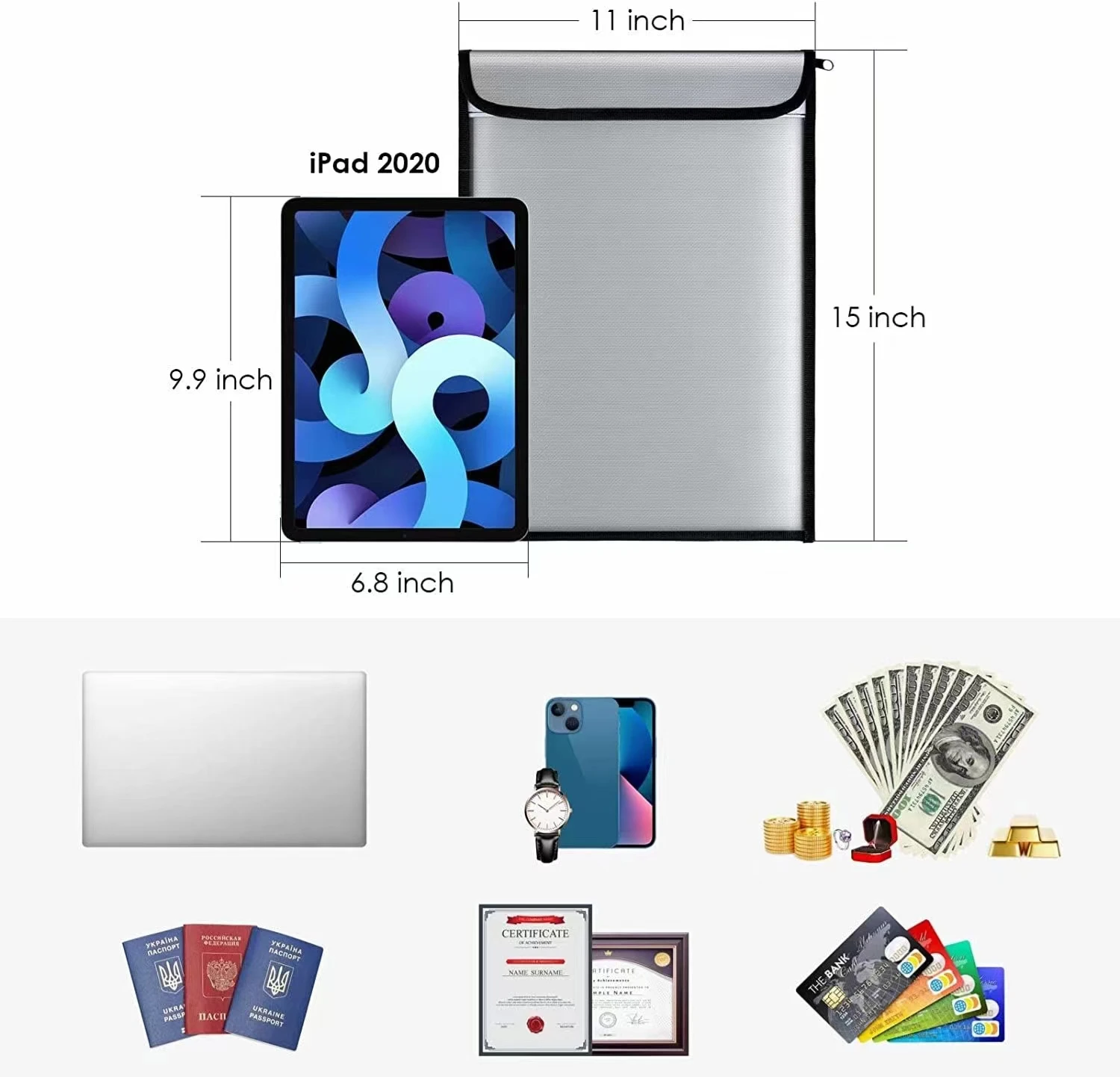 Огнеупорная Сумка для документов 11x15 дюймов 2000F водонепроницаемое покрытие хранения и денег важных вещей